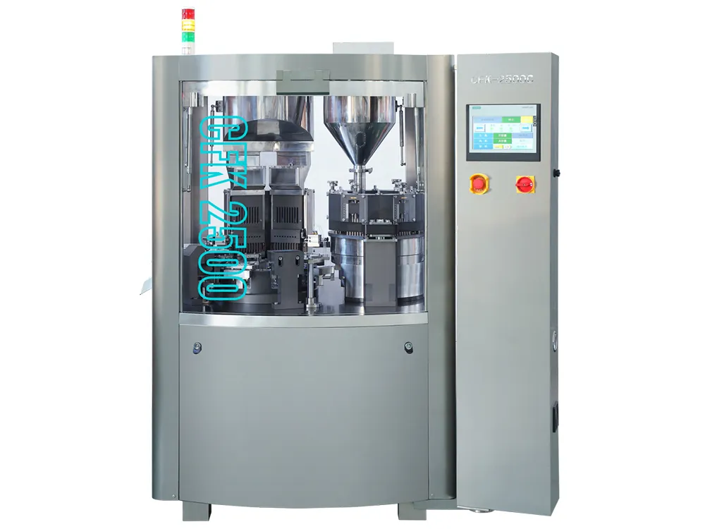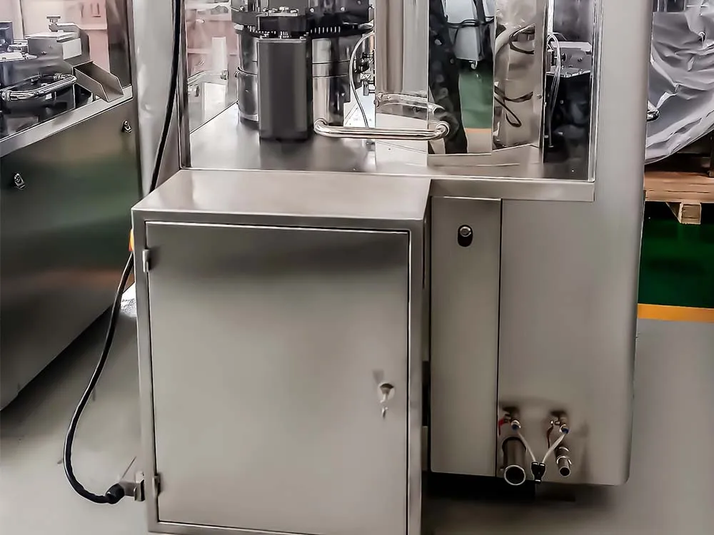 Nuestra llenadora de cápsulas automática combina precisión y eficiencia con un sistema de operación rotativa intermitente y discos dosificadores de alta precisión. Diseñada para ofrecer un rendimiento confiable, automatiza cada etapa del proceso: alimentación, separación, llenado, rechazo de cápsulas defectuosas, bloqueo y descarga de cápsulas terminadas. Su plataforma giratoria completamente cerrada de diez estaciones y su innovador diseño de doble fila con 18 orificios garantizan una producción fluida y eficiente. Ideal para encapsular polvos, gránulos o pellets, esta máquina llenadora es la solución perfecta para la industria farmacéutica y alimentaria, maximizando la productividad con un control de calidad excepcional.