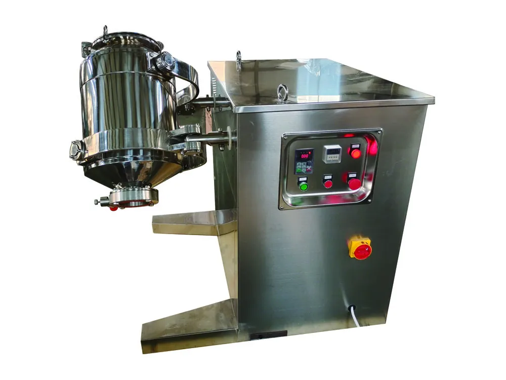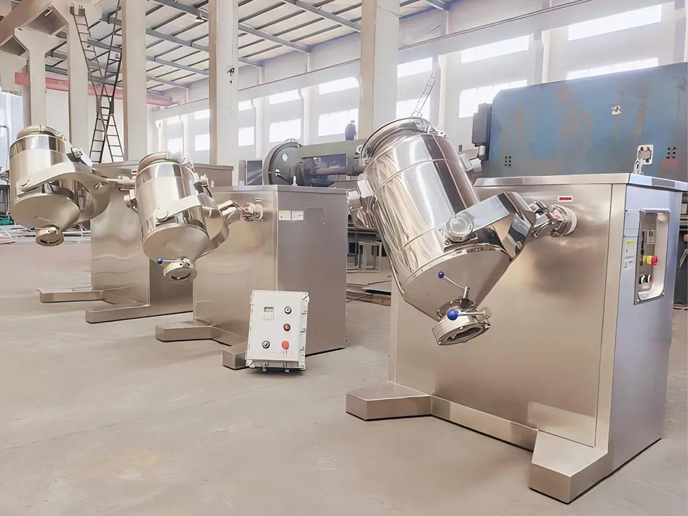 El mezclador de movimiento multidireccional destaca por su innovador diseño tridimensional, que permite que el barril de mezcla se mueva en múltiples direcciones. Este movimiento único asegura una distribución de materiales más fluida, logrando una mezcla uniforme con una eficiencia superior al 99.9%, mucho más alta que la de los mezcladores convencionales.