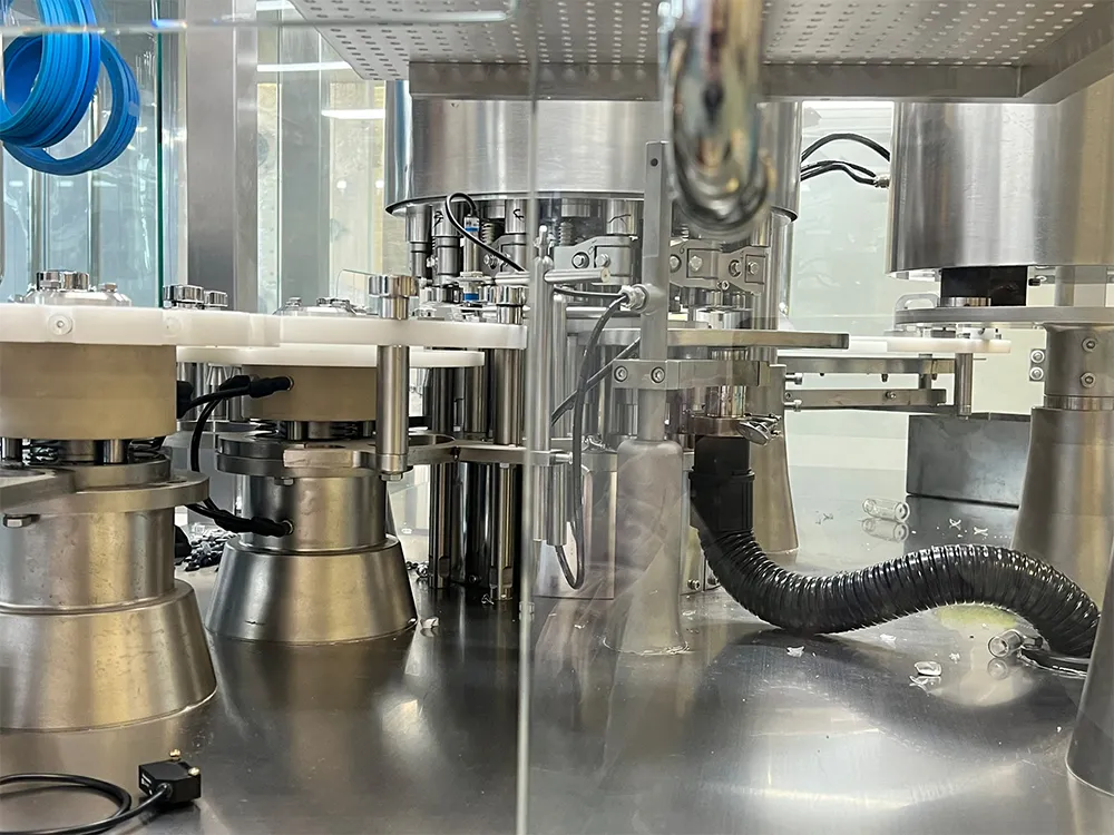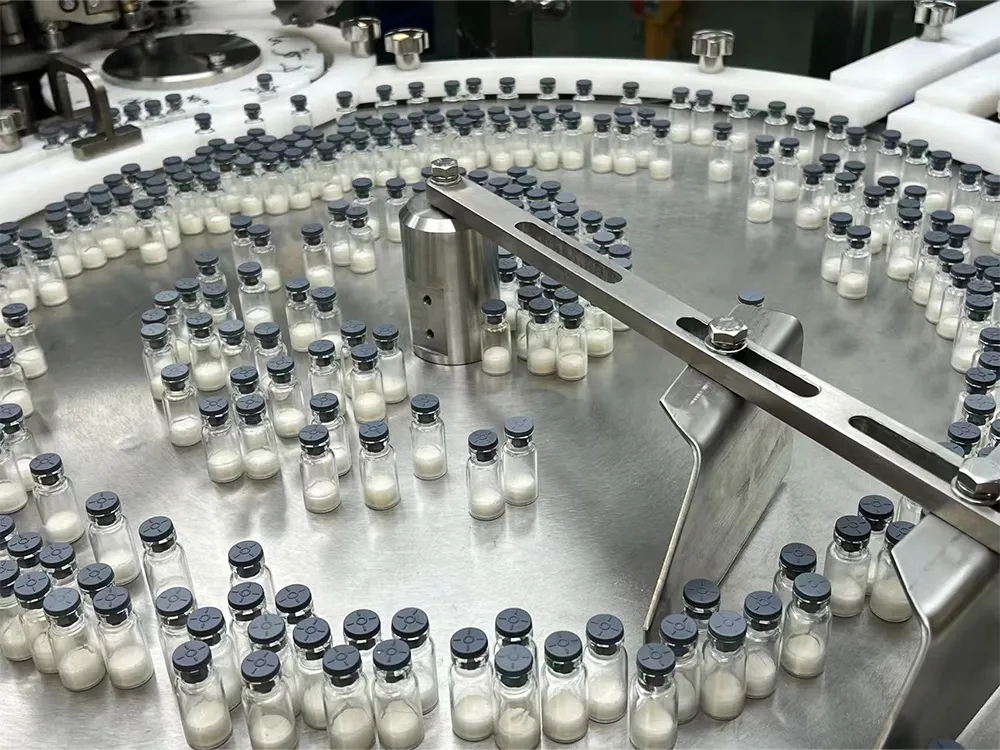 Nuestra llenadora de viales líquidos está especialmente diseñada para llenar y taponar viales de vidrio de 2-20ml con una precisión de llenado superior al 99%. Equipado con un sistema de posicionamiento de disco giratorio para el llenado y taponado automático, este equipo garantiza un rendimiento estable y confiable en todo momento. Ideal para aplicaciones de llenado de pequeños volúmenes como aceites esenciales, inyectables y otros líquidos farmacéuticos, es una solución versátil y eficiente que encuentra aplicación en las industrias farmacéutica, alimentaria, química y de investigación.