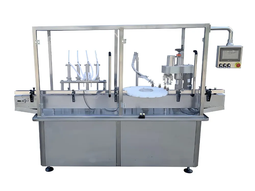 Nuestra máquina llenadora y taponadora de líquidos está especialmente diseñada para botellas de viales de gran volumen (50-100ml) utilizadas en jarabes y líquidos orales. Equipado con un sistema de llenado de tornillo y una función de ¨no botella, no llena¨, este equipo garantiza eficiencia y precisión, reduciendo al mínimo el desperdicio al dispensar solo cuando la botella está colocada correctamente. Además de la máquina de llenado, ofrecemos equipos auxiliares como alimentadores de botellas, lavadoras, hornos de esterilización de túnel y etiquetadoras, proporcionando soluciones completas y personalizadas para su línea de producción. Podemos ajustar el equipo según las necesidades específicas de su proceso, asegurando una solución ideal y eficiente.