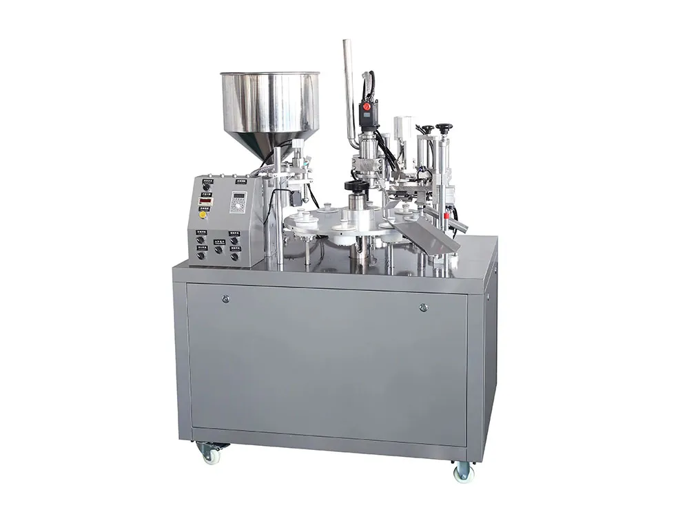 La llenadora y selladora semiautomática de tubos garantiza un llenado preciso y un sellado estable. Diseñada con 8 estaciones de trabajo, la llenadora de tubos automatiza todos los procesos, excepto la alimentación manual de tubos. La forma y el tamaño de los sellos se pueden ajustar fácilmente para cumplir con los requisitos específicos del usuario, lo que los convierte en una opción versátil para diversas industrias.