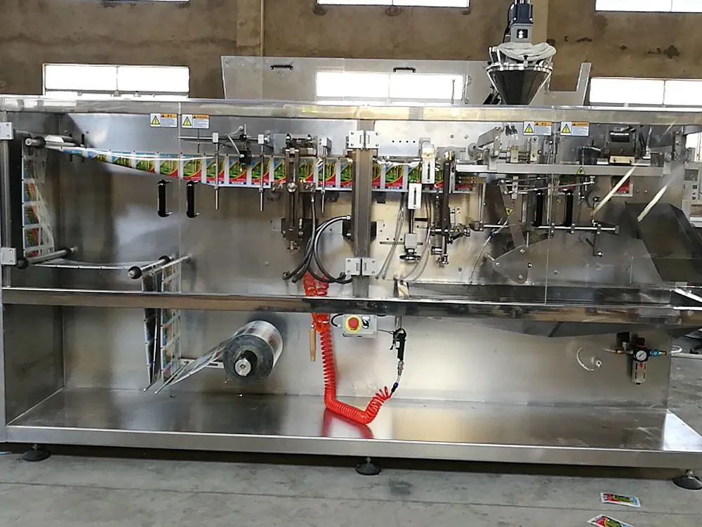 La envasadora horizontal (HFFS) está diseñada para empaquetar eficientemente una amplia gama de productos. Alimenta el producto horizontalmente en el material de embalaje, seguido de los procesos de formación, llenado y sellado, todo en una secuencia continua y sin interrupciones. Esta envasadora horizontal versátil es ideal para diversas industrias, como la alimentaria, farmacéutica y cosmética, proporcionando soluciones de envasado fiables y de alta eficiencia.